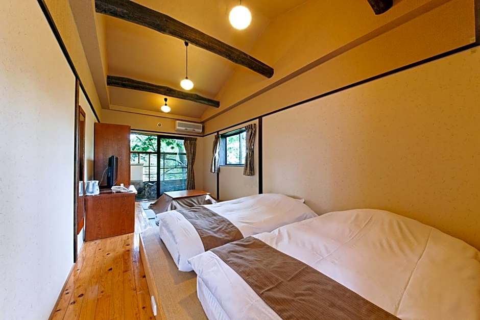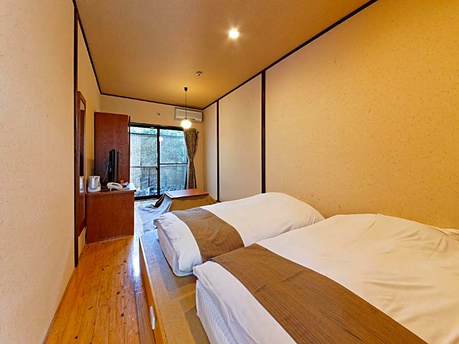 The private open-air bath is the standout feature of this twin room. The twin room includes a private bathroom, well-fitted with a bath, a shower, a bidet, a hairdryer and slippers. This twin room is air-conditioned and has a flat-screen TV, a safe deposit box, a sofa and yukata. The unit has 3 futons.